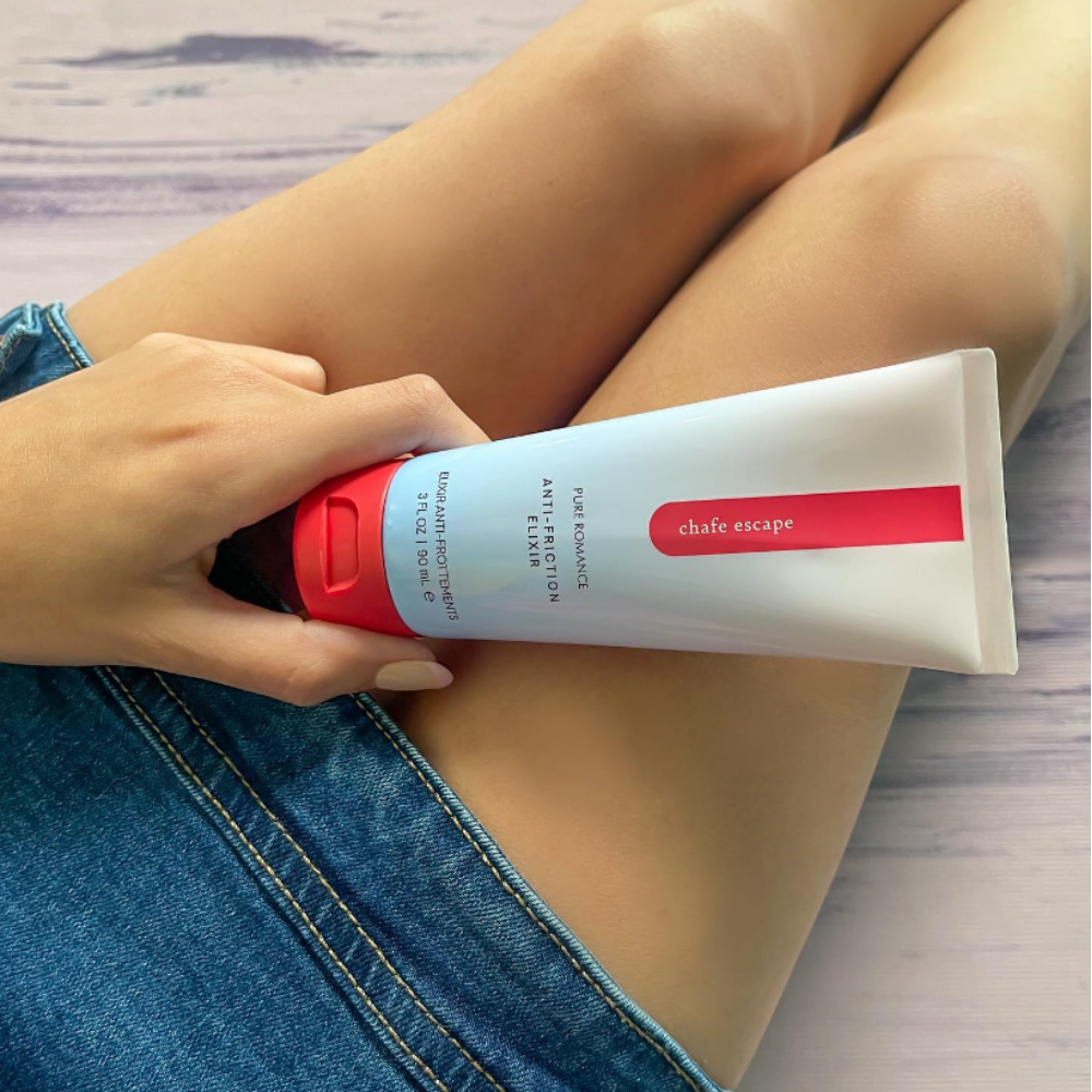 Escape the chafe with this protective, cream-to-powder lotion. This protective cream to powder formula is filled with soothing botanicals that make it a must-have. It's perfect for easily irritated areas like thighs, arms, nipples or testicles. Simply apply as needed to transform problem areas into smooth, dry, chafe free skin.