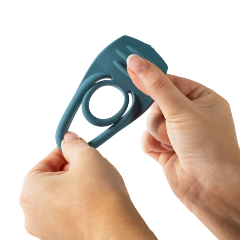 Flexible twin rings offer satisfying sensations for your partner while a powerful 10-function clitoral vibrator delivers intense pleasure for you. Slip one silicone ring over the penis and the other over the testicles, then turn the ridged massager toward your clitoris for a mind-blowing time, for both of you!