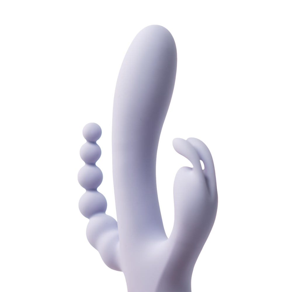 Triple The Fun is a 3-in-1 vibrator designed for layered pleasure and total control. Featuring a rabbit-eared clitoral teaser, a vibrating shaft, and a beaded anal stimulator, this versatile piece allows you to explore multiple sensations at once or focus on one area at a time. Each component operates independently, making it easy to customize intensity, rhythm, and combination play to suit your desires.Â