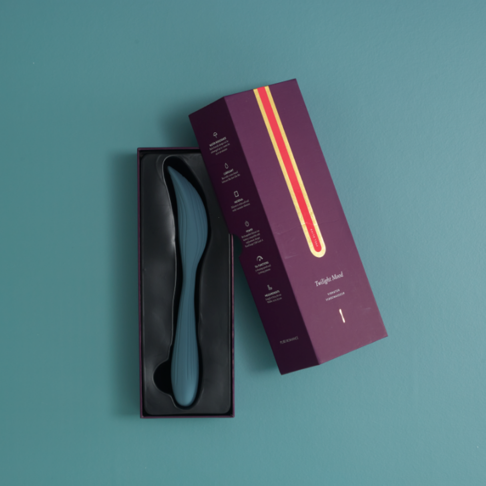 ⦠Bend Twilight Mood at the center for hands-free stimulation during intercourse. Just lubricant, insert vaginally and invite your partner to slip in alongside it for shared vibration.